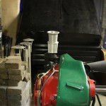 Foto 14: de Honda 390cc 4-takt. Het blok krijgt een onderhoudsbeurt (olie, filters, bougie, enz.) en we gaan de luchtkoelingkappen spuiten (kleur zwart).